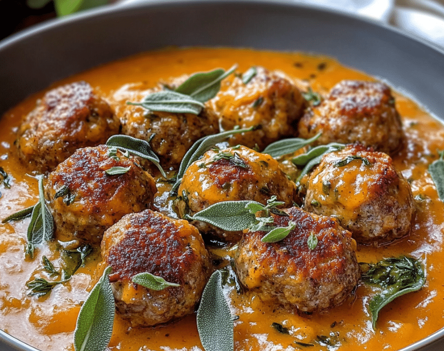 Turkey Meatballs in Pumpkin Sage Sauce